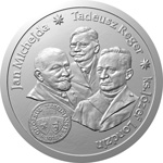 Na awersie portrety trzech przywódców: Jan Michejda, Tadeusz Reger i ks. Józef Londzin.